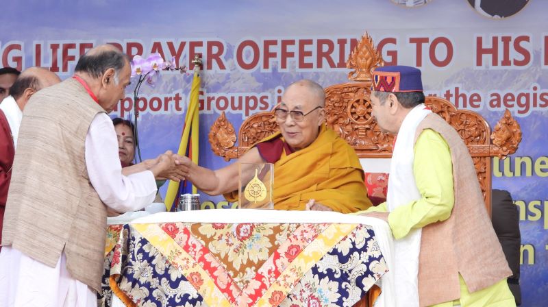 དེ་རྗེས་རྒྱ་གར་བོད་དོན་རྒྱབ་སྐྱོར་ཚོགས་པ་སྡེ་ཚན་ནང་མའི་རྒྱལ་ཡོངས་འབྲེལ་མཐུད་པ་རིན་ཆེན་མཁའ་འགྲོ་ཁེར་མེ་ལགས་ཀྱིས་གུས་འདུད་འཚམ་འདྲི་དང་བཅས་གསུང་བཤད་གནང་དོན། རྒྱ་གར་རྒྱལ་ཡོངས་ཀྱི་བོད་དོན་རྒྱབ་སྐྱོར་ཚོགས་པ་ཉི་ཤུ་རྩ་བཞིའི་ཁྱིམ་ཚང་ཆེན་མོ་དང་། གྲོགས་པོ་དང་བཟང་སེམས་ཅན་མང་པོས་སེམས་ཤུགས་གཅིག་ཏུ་བསྒྲིལ་ཏེ་༸གོང་ས་མཆོག་གི་སྐུ་ཚེ་བརྟན་ཅིང་། སྐུ་གཟུགས་བདེ་ཐང་། སེམས་ཅན་ཐམས་ཅད་ལ་ཕན་པའི་སྙིང་རྗེ་རྒྱུན་ཆད་མེད་པར་གནས་པའི་གསོལ་འདེབས་ཟབ་མོ་འབུལ་རྒྱུ་ཡིན། ༸གོང་ས་མཆོག་ནི་འགྲོ་བ་མིའི་རིགས་ཀྱི་ལམ་སྟོན་གྱི་སྒྲོན་མེ་ཞིག་ཏུ་གནས་པར་ཤོག ཅེས་དང་།