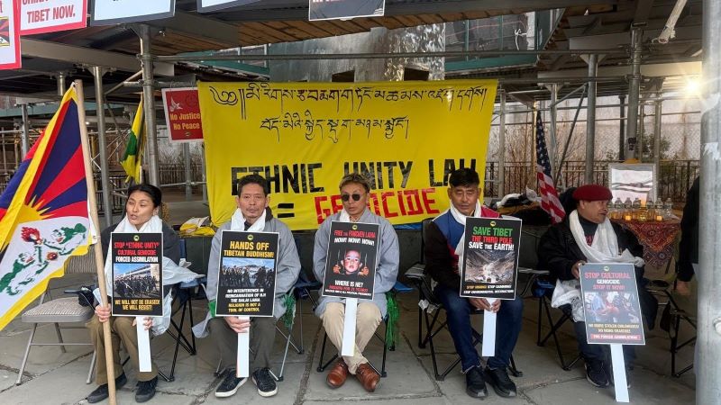 ཕྱི་ལོ་༢༠༢༥ ཟླ་བ་༤ ཚེས་༧ ཉིན་སྤེལ། ཨ་རི་ནིའུ་ཡོག་དང་ནིའུ་ཇར་སི་ས་གནས་བོད་ཀྱི་གཞོན་ནུ་ལྷན་ཚོགས་ཀྱི་གོ་སྒྲིག་འོག ས་གནས་གཞོན་ནུའི་ཚོགས་མི་དང་བོད་མི་གཞན་ཁག་ཅིག་གིས་རྒྱ་དམར་གཞུང་གིས་ཉེ་ཆར་གཏན་འབེབས་བྱས་པའི་མི་རིགས་བསྲེས་ལྷད་ཀྱི་སྲིད་བྱུས་དང་རྒྱ་བསྒྱུར་གྱི་སྲིད་བྱུས་ལ་ངོ་རྒོལ་དང་། ༸པཎ་ཆེན་ཆུང་སྲིད་རིན་པོ་མཆོག་གཙོས་པའི་བོད་ཀྱི་ཆབ་སྲིད་བཙོན་པ་་རྣམས་གློད་གྲོས་དགོས་པའི་དགོས་འདུན་བཏོན་འདུག དེ་བཞིན་བོད་རྒྱའི་དཀའ་ངལ་གསལ་རྒྱུར་མཉམ་འབྲེལ་རྒྱལ་ཚོགས་དང་། རྒྱལ་སྤྱིའི་ཚོགས་པ་ཁག་ནས་མུ་མཐུད་རྒྱབ་སྐྱོར་ཡོང་བའི་འབོད་སྐུལ་ཞུས་འདུག