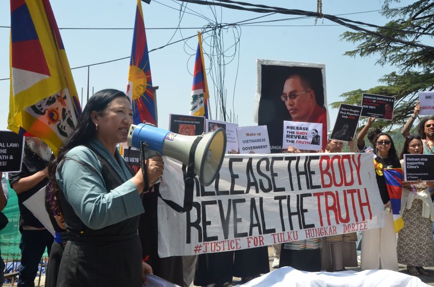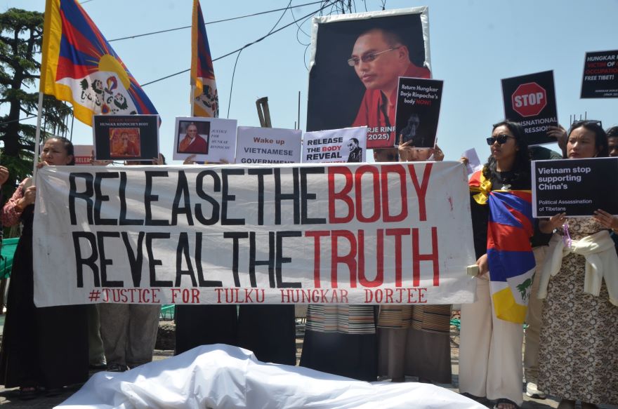 ༢༠༢༥ལོའི་ཟླ་༤ཚེས་༡༨ཉིན་བཞུགས་སྒར་དུ་རྟེན་གཞི་བྱེད་པའི་བོད་ཀྱི་གཞུང་འབྲེལ་མ་ཡིན་པའི་ཚོགས་པ་ཁག་གི་གོ་སྒྲིག་འོག་ཝེ་ཊི་ནཱམ་དམར་གཞུང་གིས་བོད་ཀྱི་སྤྲུལ་སྐུ་ཧཱུྃ་ཀར་རྡོ་རྗེ་མཆོག་གི་སྐུ་ཕུང་ཚུར་བོད་མིར་རྩིས་སྤྲོད་གནང་དགོས་པའི་འབོད་སྐུལ་གྱི་ཞི་བའི་ངོ་རྒོལ་ཞིག་གནང་སོང༌།
