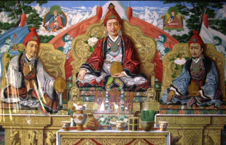 ྋརྒྱལ་མཆོག་བཅུ་གསུམ་༢༧ བློ་བཟང་རྒྱལ་མཚན་༢༨མཆོག །ཚེ་གླིང་ངག་བློ་བསྟན་པའི་རྒྱལ་མཚན་༢༩ དང༌། །སླར་ཡང་ྋརྒྱལ་མཆོག་ཐུབ་བསྟན་རྒྱ་མཚོ་མཆོག ༣༠། །རྭ་སྒྲེང་འཇམ་དཔལ་ཡེ་ཤེས་༣༡གང་ཉིད་དང༌། །ཡོངས་འཛིན་སྟག་བྲག་རིན་པོ་ཆེ་ཉིད་མཆོག །ྋརྒྱལ་དབང་བསྟན་འཛིན་རྒྱ་མཚོ་ལ་སོགས་པའི། །དགའ་ལྡན་ཕོ་བྲང་སྲིད་སྐྱོང་རིམ་བྱོན་གྱིས། །ཁྲི་ལོ་སུམ་བརྒྱ་དྲུག་ཅུ་རེ་བདུན་བསྐྱངས།།