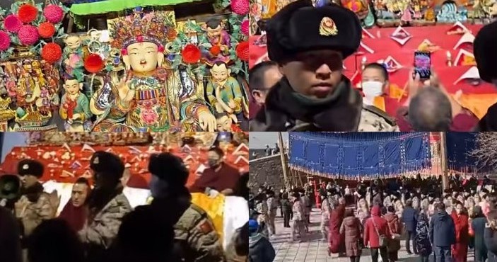 ཕྱི་ལོ་༢༠༢༥ ཟླ་༢ ཚེས་༡༤ ཉིན་སྤེལ། བོད་མདོ་སྨད་སྐུ་འབུམ་བྱམས་པ་གླིང་དུ་མེ་ཏོག་མཆོད་པར་མཇལ་ཁ་གཏོང་སྐབས། རྒྱ་གཞུང་གི་དམག་ཆས་སྤྲད་པའི་དམག་མི་འབོར་ཆེན་བགོ་འགྲེམས་བྱས་ནས་མི་མང་ལ་མེ་ཏོག་མཆོད་པ་མཇལ་བར་དམ་དྲག་ནན་པོ་བྱས་ནས་བོད་མིའི་ཆོས་དད་རང་དབང་ལ་རྡོག་རོལ་བཏང་དང་གཏོང་བཞིན་འདུག