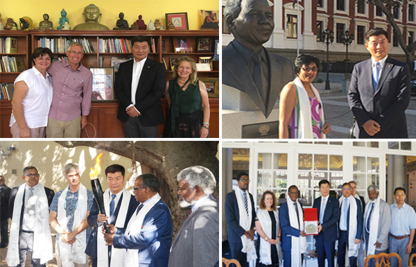 དེ་ཡང་སྲིད་སྐྱོང་བློ་བཟང་སེངྒེ་མཆོག་གིས་༢༠༡༨ཟླ་༢ཚེས་ ༨ ཉིན་ལྷོ་ཨ་ཕི་རི་ཀའི་གྲོང་ཁྱེར་ཀེབ་ཊའོན་ Cape Town ནང་རྟེན་གཞི་བྱས་པའི་ཨུ་བྷུན་ཏུ་ལུས་སེམས་བདེ་ཐབས་ཀྱི་བསྟི་གནས་ཁང་ Ubuntu Wellness Centre དུ་ཕེབས་ཏེ་ཞི་བདེའི་མེ་ལྕེའི་ Peace Torch གོམ་འགྲོས་ལས་འགུལ་དབུ་འཛུགས་གནང་འདུག