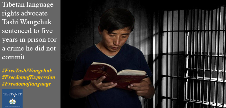 དེ་ཡང་ཟླའདིའི་༥ཚེས་༢༢ཉིན་བོད་ཀྱི་སྐད་ཡིག་སློབ་གསོའི་ཐོབ་ཐང་རྩོད་ལེན་པ་བཀྲ་ཤིས་དབང་ཕྱུག་ལགས་ལ་རྒྱ་ནག་གཞུང་གིས་ཁྲིམས་འགལ་ངོས་འཛིན་བྱས་ཐོག་ལོ་ལྔའི་དུས་བཀག་བཙོན་འཇུག་གི་ཁྲིམས་ཐག་བཅད་འདུག དེ་ཡང་མཚོ་སྔོན་ཞིང་ཆེན་ཡུལ་ཤུལ་ཁུལ་གྱི་མི་དམངས་འབྲིང་རིམ་ཁྲིམས་ཁང་ཟེར་བས་བོད་མི་བཀྲ་ཤིས་དབང་ཕྱུག་ལགས་ལ་ལོ་ལྔའི་ཁྲིམས་ཐག་བཅད་པ་དེར། རྒྱལ་སྤྱིའི་བོད་དོན་འབྲེལ་མཐུད་ལས་འགུལ་ཁང་གིས་གནས་ཚུལ་སྤེལ་གསལ་ལྟར་ན། ཡུལ་ཤུལ་ཁུལ་གྱི་མི་དམངས་འབྲིང་རིམ་ཁྲིམས་ཁང་གིས་བཀྲ་ཤིས་དབང་ཕྱུག་ལགས་ཕྱི་ལོ་ ༢༠༡༨ ཟླ་ ༥ ཚེས་ ༢༢ ཉིན་ལོ་ལྔའི་ཁྲིམས་ཐག་བཅད་ཡོད་པ་དང་། བཀྲ་ཤིས་དབང་ཕྱུག་ལགས་ཀྱི་ཁྲིམས་རྩོད་པ་ལིང་ཞའོ་ཇུན་(Liang Xiaojun)ལགས་ཀྱིས་ཊི་ཝི་ཊར་(Twitter)སྟེང་བཀོད་ཡོད་པ་དེ་ལུང་འདྲེན་གནང་འདུག